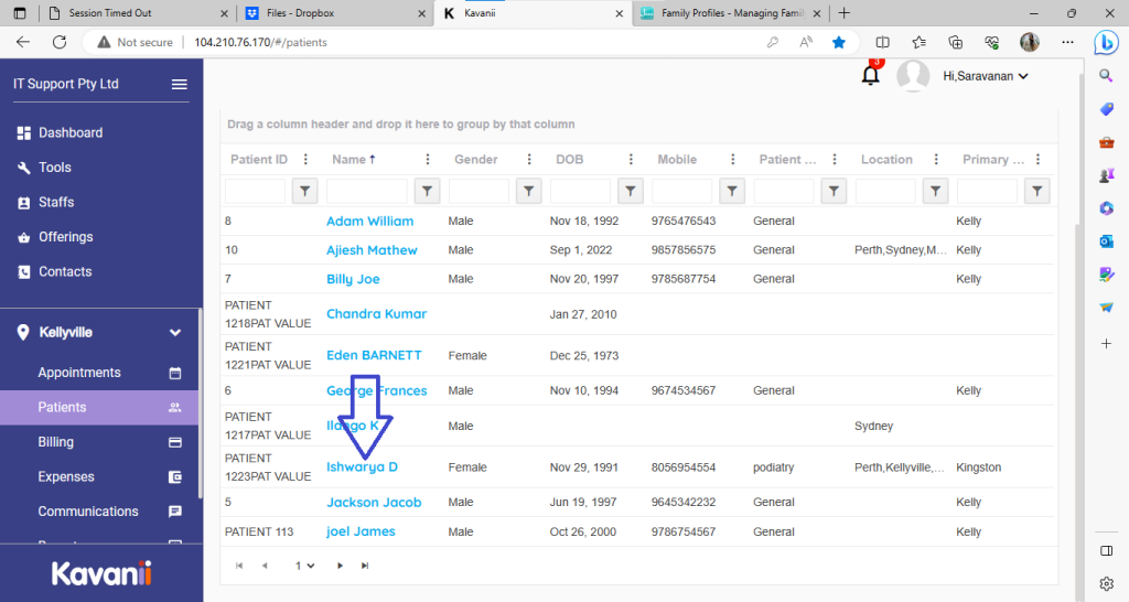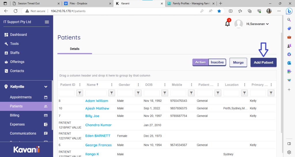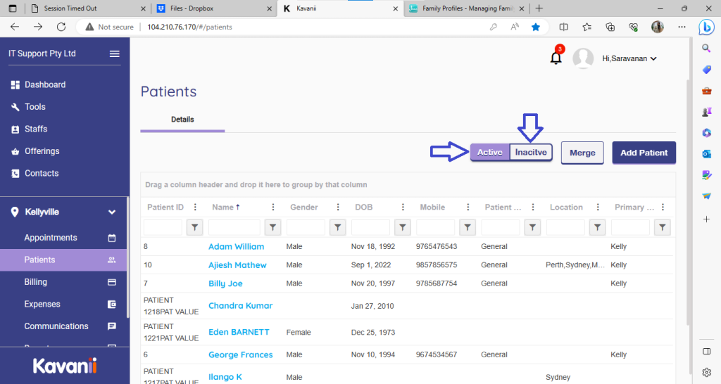 To view the current patient list and inactive patient list, you can choose the option on the patient screen: