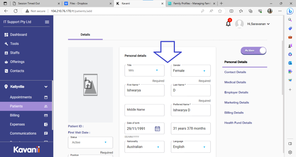 Once clicked on add patients: You need to enter the personal information of the patient: