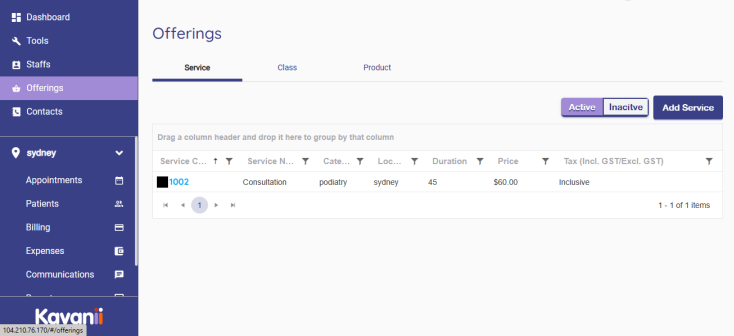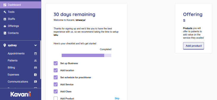You can click on offerings on the dashboard menu in order to choose for service, class or product: