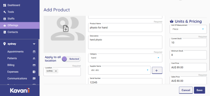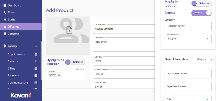 2. Click on add product (a product we offer to patients to add value to services) option on the left side menu