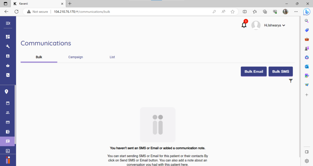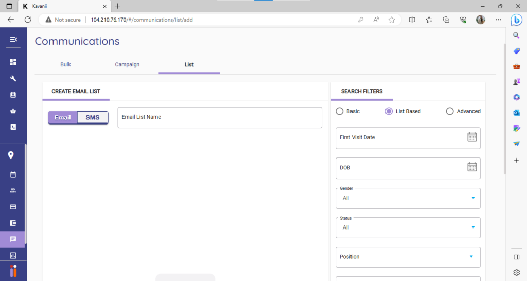Once the list is selected, you can send them bulk emails or SMS, choosing under a subject.