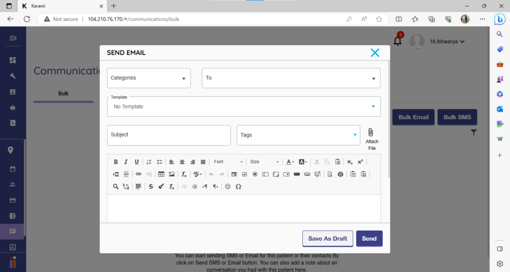 When we offer bulk emails for appointments, greetings or wishes can be sent from here. You can choose the category under which you are sending an email.