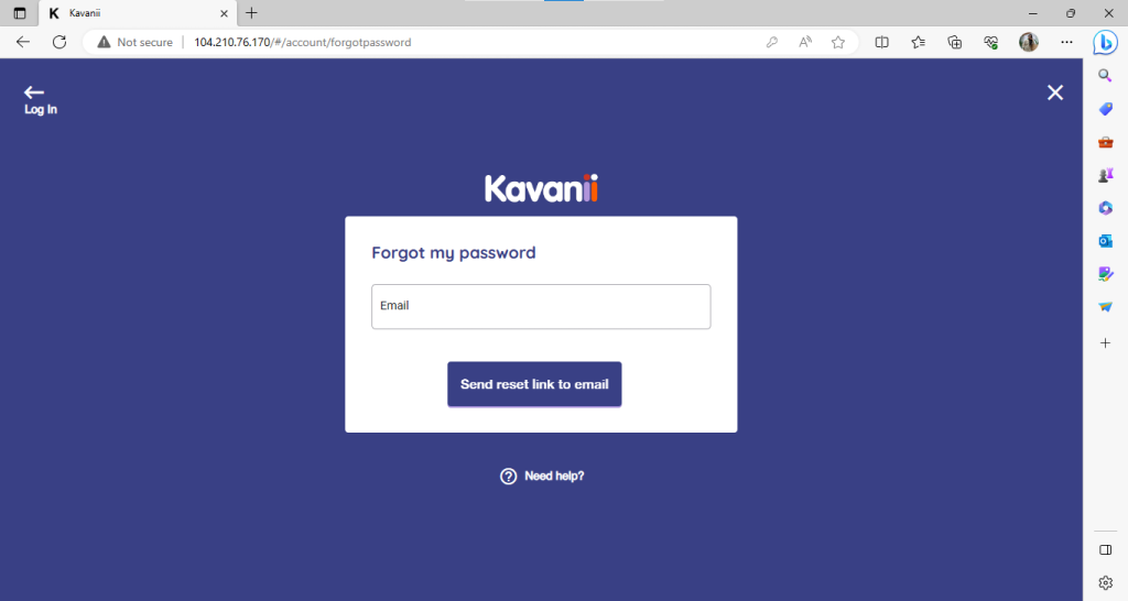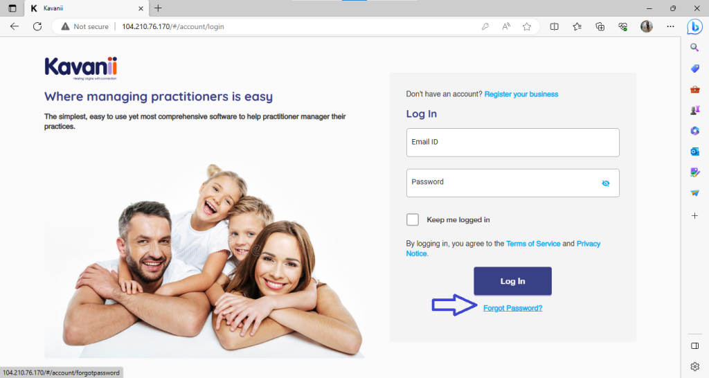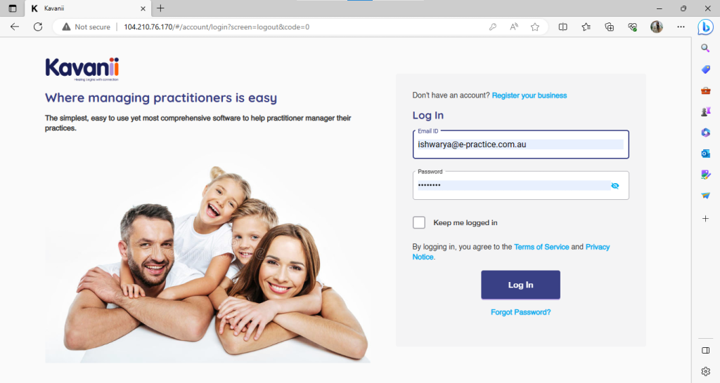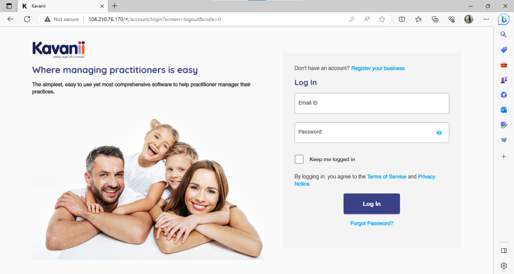 To log in to the Kavanii website, you will land on the page to enter your username and password: