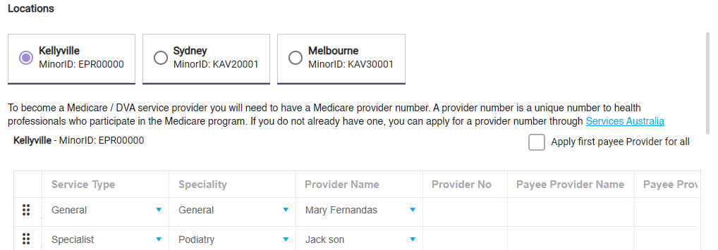 To become a Medicare / DVA service provider, you must have a Medicare provider number. A provider number is unique to health professionals who participate in the Medicare program. You can apply for a provider number through Services Australia if you do not already have one.