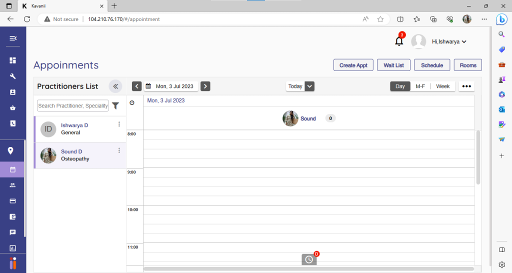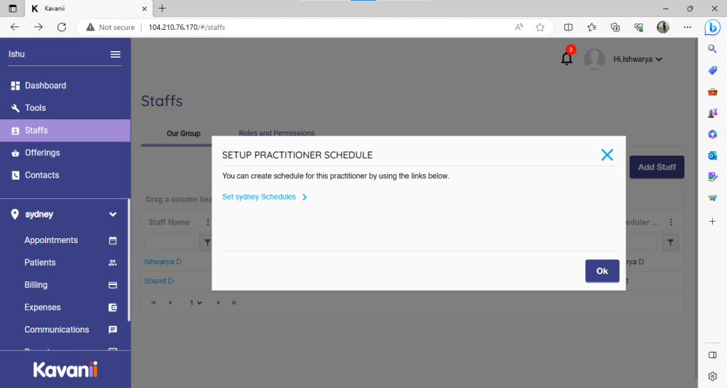 Once clicked on save, it will ask to set a schedule for the practitioner: