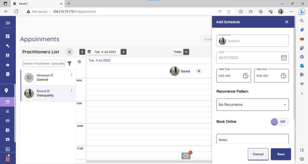Scheduling options will be opened, and you can add a schedule to the practitioner.